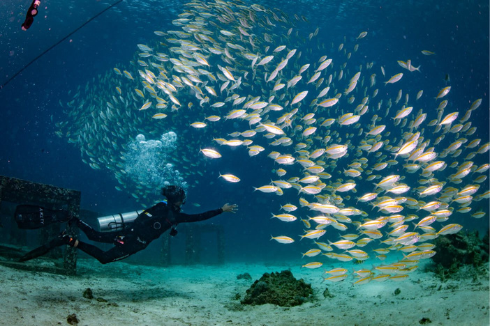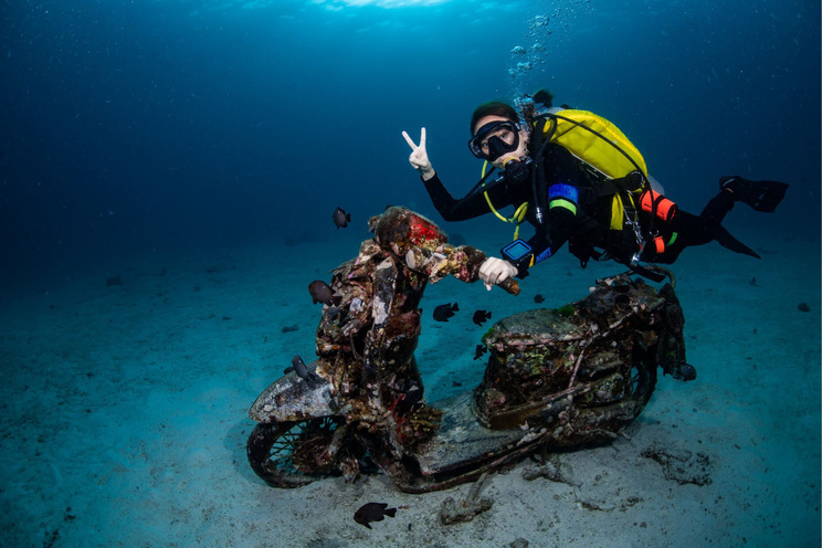 licznych raf koralowych Jest to świetne miejsce dla początkujących do nurkowania z akwalungiem i próbnych nurkowań.Najważniejsze to wrak skutera i kilka małych łódek dla nurków, którzy