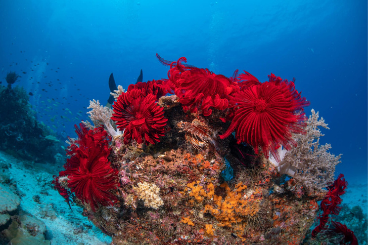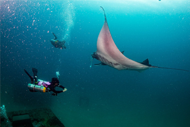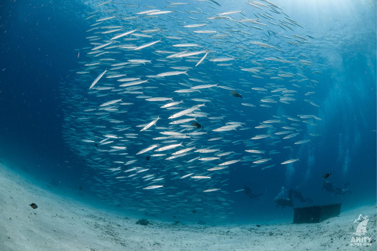 przyciąga duże stworzenia morskie, takie jak manty, rekiny wielorybie i płaszczki.