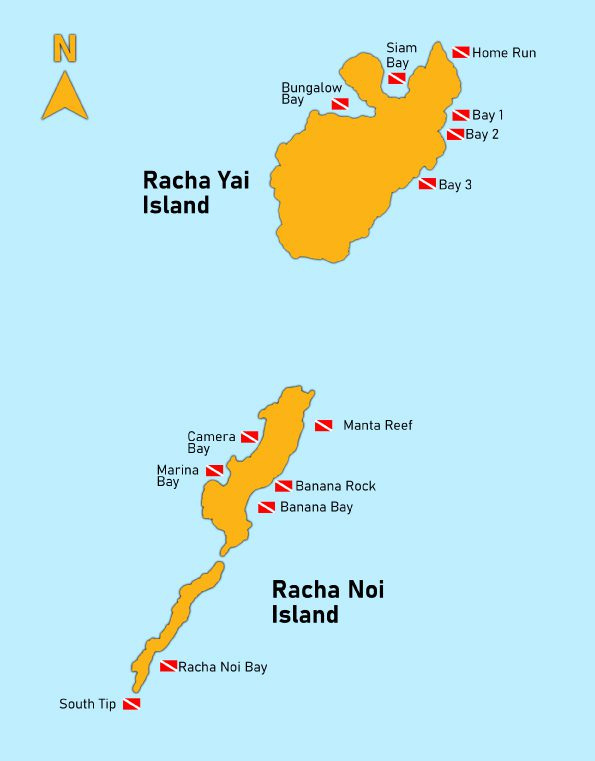 Grupa wysp Racha znajduje się na południe od Phuket i składa się z dwóch wysp: północna wyspa nazywa się Racha Yai. a południowa wyspa nazywa się Raja Noi.