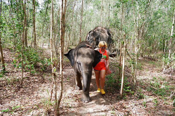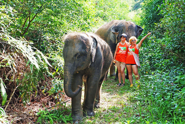 Spacer ze słoniami w dżungli w najważniejszym miejscu w rezerwacie przyrody Elephant Wildlife Sanctuary na Phuket.