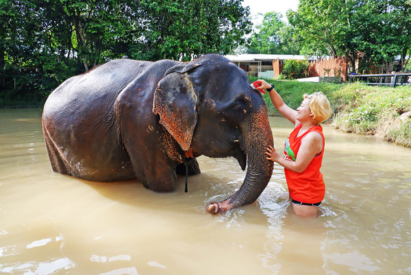 15:30 – 16:00: „Zacznij robić kąpiele borowinowo-piaskowe”; Imponujące dotknięcie słonia własnymi rękami przy kąpieli błotnej dla słonia.
